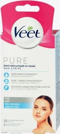 Hypoalergenní pryskyřičné proužky Veet Pure na obličej